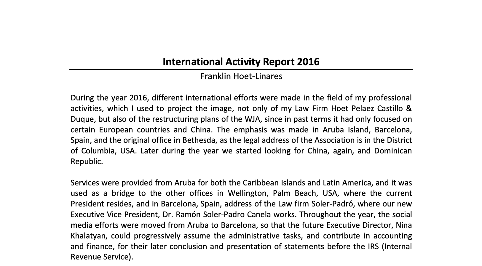 The Board of Governors has decided to elect Ms. Sorell Negro as the New President of the World Jurist Association U.S. Chapter. We are confident that her excellent legal experience will further enhance the Association as she leads the founding branch of the World Jurist Association. She is the youngest female attorney in our history to […]
